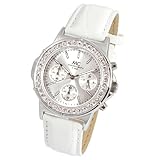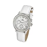 Damenarmbanduhr Chronograph mit Swarovskisteine und weissem Lederband Artnr.: 25867