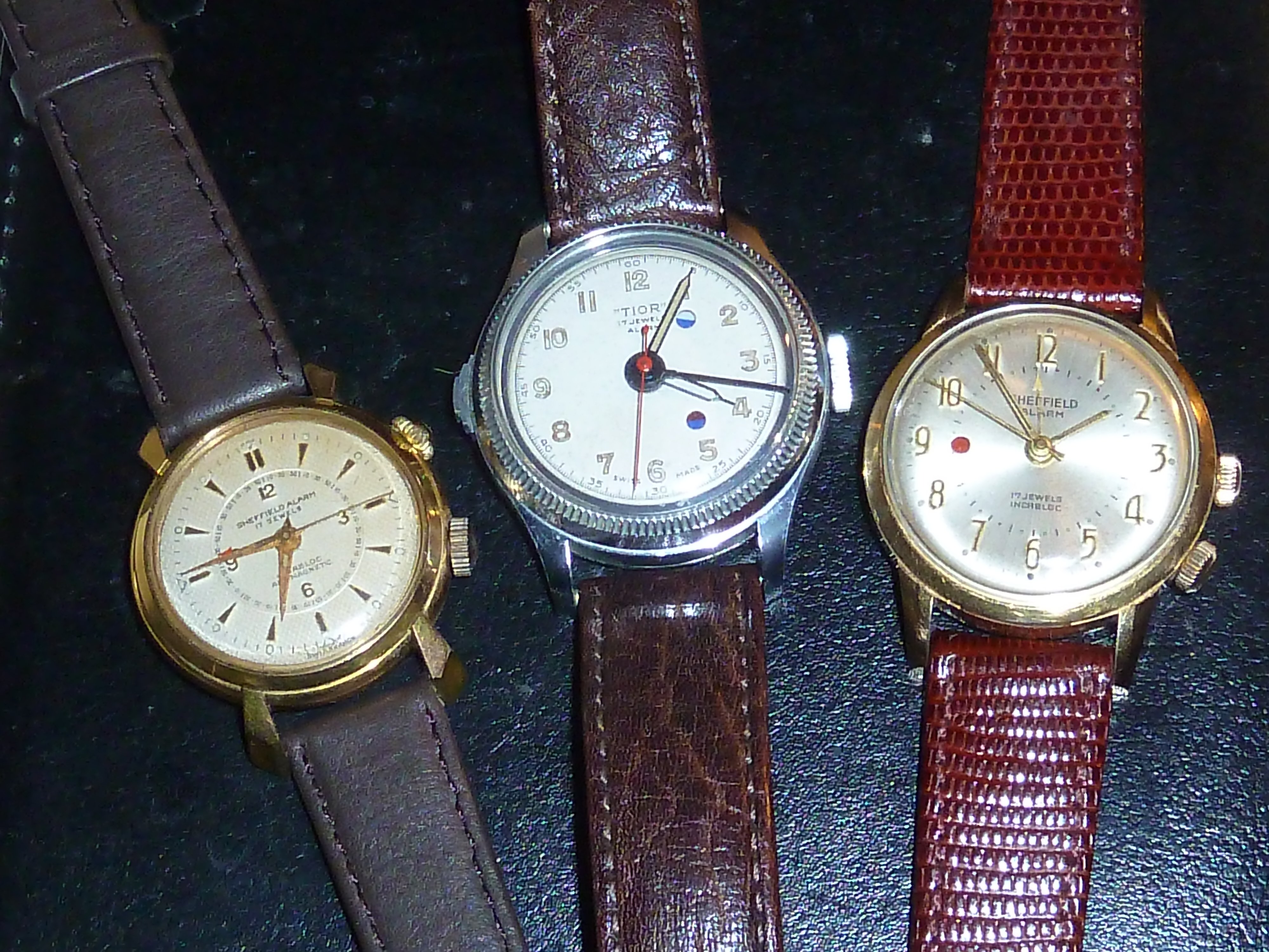 Foto ist zusammen mit meiner anderen Sheffield Alarm mit AS 1475, einer frühen Ausführung mit dem kleinen "AS" auf dem Boden und einer "Tior", die es u. a. auch als Sheffield gibt, Zifferblätter sind geduldig. In der "Tior" ist ein Baumgartner 90.